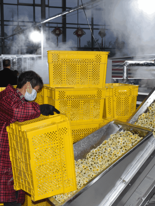 而后及时摊晾,使其均匀失水。经验丰富的匠人会通过精准的蒸汽杀青或低温烘干,锁住菊花的色、香、形、效。