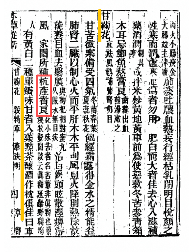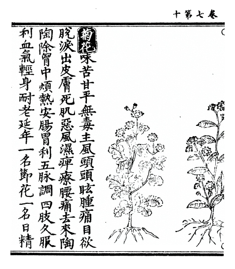 至清朝,《本草从新》记载:“甘菊花……杭产者良,有黄、白两种,单瓣味甘者入药、点茶、酿酒、作枕俱佳。”